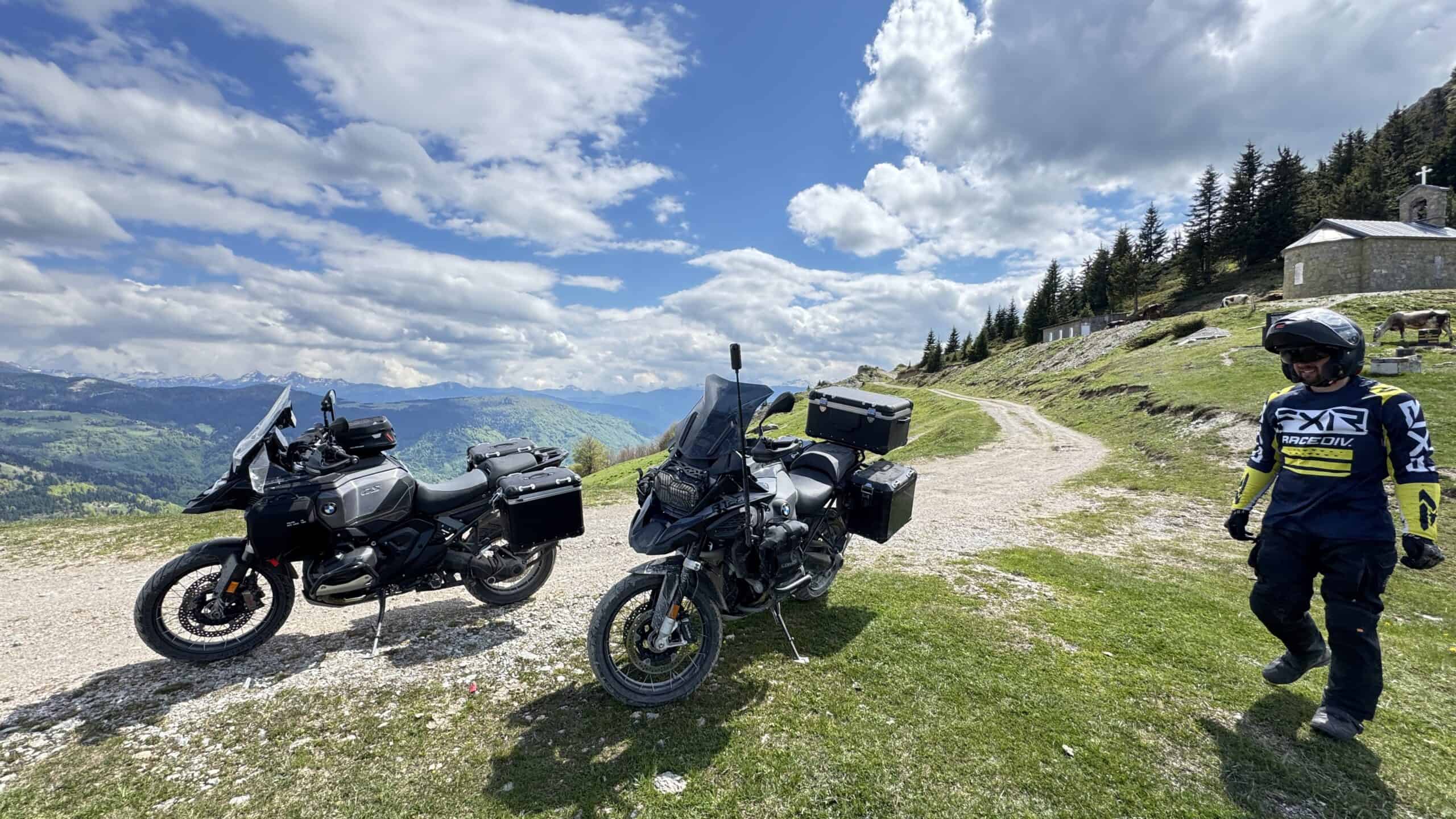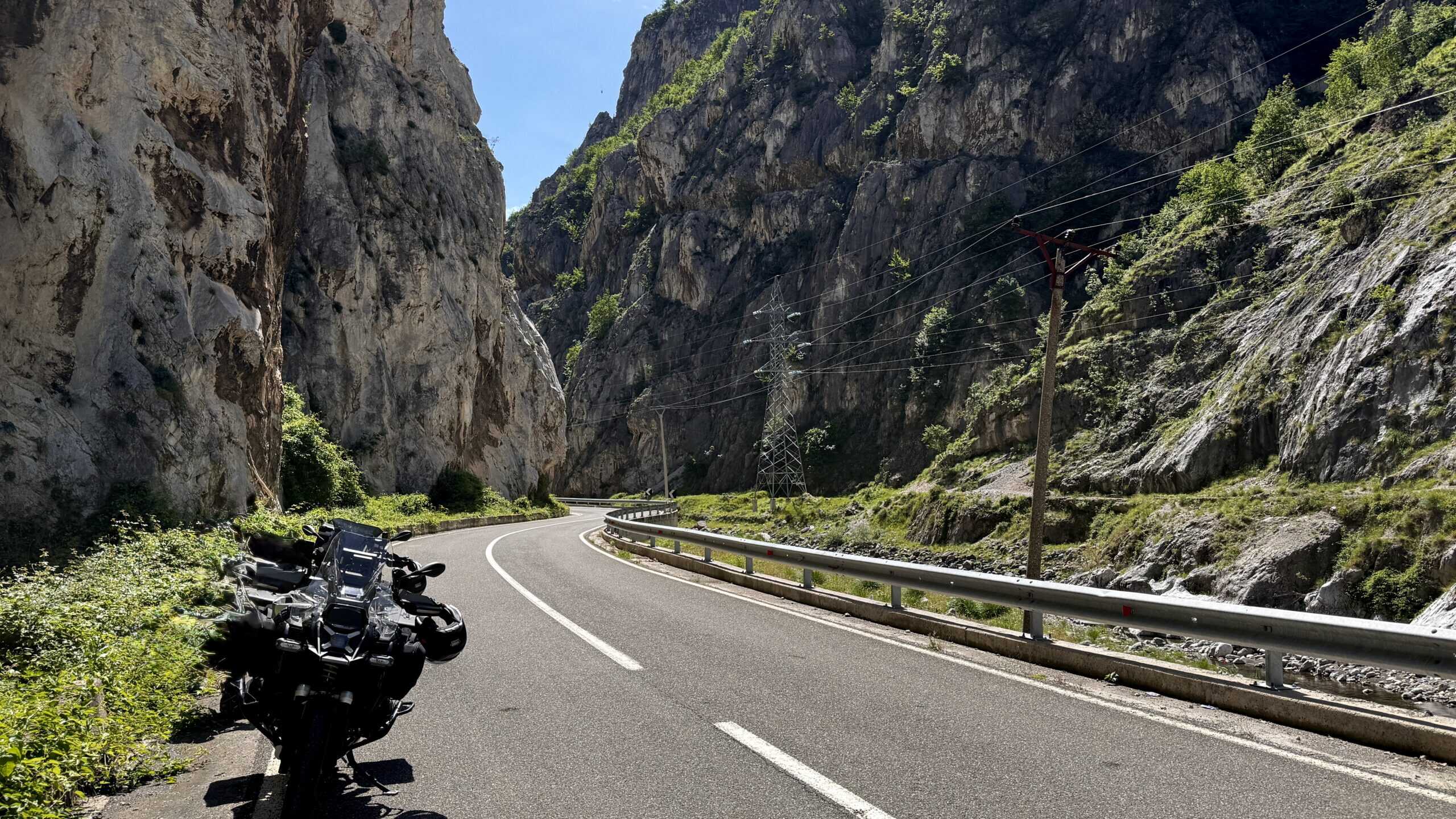 Den heutigen Tag könnte man als „Grenzerfahrung“ bezeichnen. Kurz nachdem wir Podgorica verlassen haben, geht es auch schon in das Land der wilden Adler, nach Albanien. Die beeindruckende Berglandschaft Albaniens fängt gleich mit dem berühmtesten Bergpass, dem Lequet e Hotit an. Enge Serpentinen und bis zu 13% Gefälle wieder spektakuläre Aussichten auf die albanischen Alpen. Ein Kurven Highlight folgt dem anderen, nach 50km geht machen wir noch einen Bogen durch Montenegro, bevor die Grenze zum Kosovo erreichen. Der Übergang liegt auf knapp 1.800m ist gleichzeitig der legendäre Kula Pass. Er ist einzige Straßenverbindung zwischen dem Kosovo und Montenegro. Er schlängelt sich durch wilde Bergketten, bietet steile Anstiege atemberaubende Ausblicke auf die umliegenden Gipfel. Nahezu unberührte Natur, grüne Täler und schroffe Felsen prägen diese einzigartige Landschaft. Am Ende des Tages erreichen wir den Beli Drin, der in den größten Stausee Albaniens fließt. Den Abend genießen wir in einem außergewöhnlichen First-Class-Hotel.