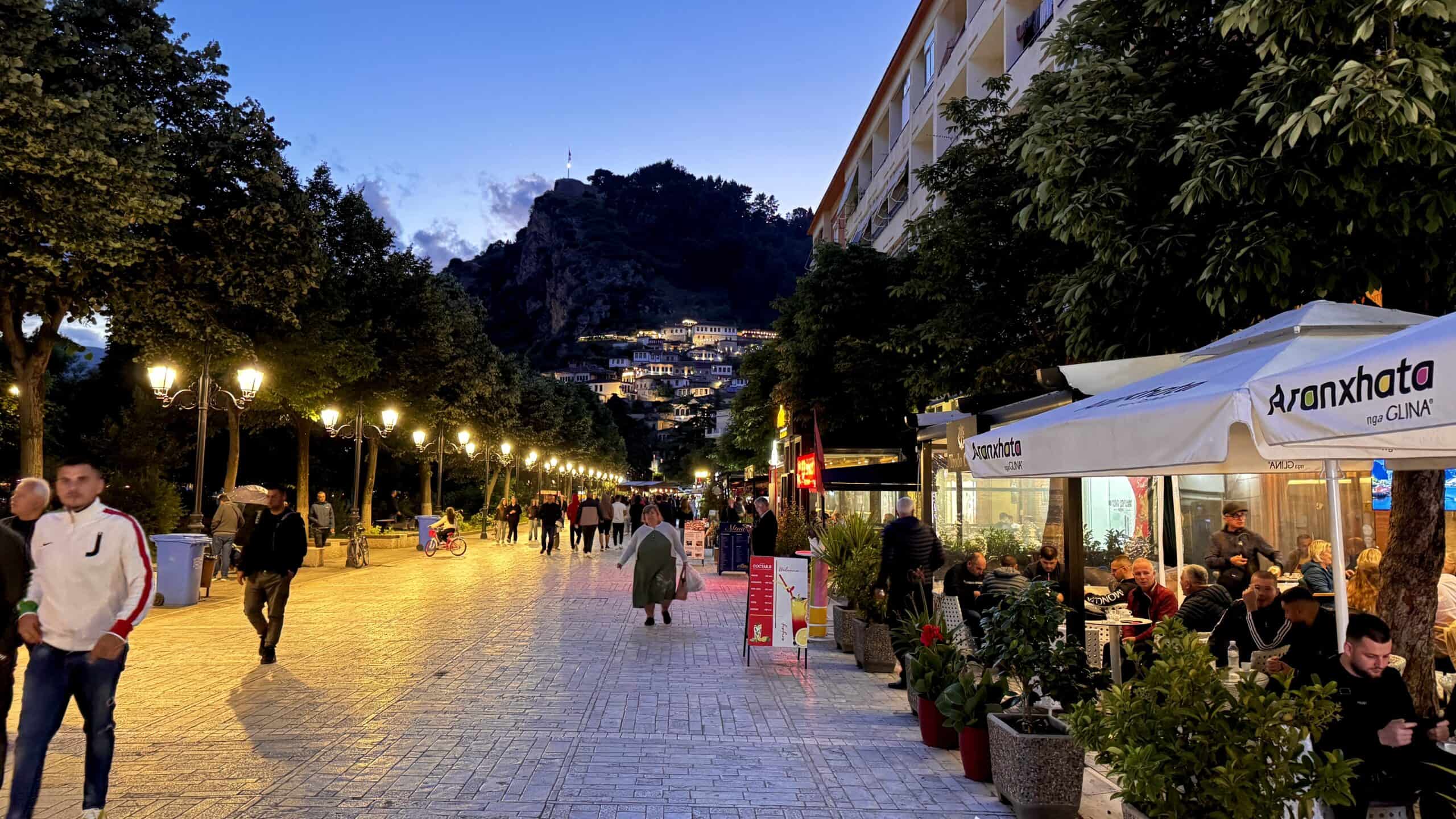 Der doppelköpfige Adler ist das Nationalsymbol der Albaner. Gen Süden führt uns unsere Strecke durch die albanischen Alpen. Ursprüngliche Berglandschaften, vorbei an kleinen Dörfern, die authentisches Balkan-Flair versprühen. Es geht durch den Ostens Albaniens, durch den Nationalpark Shebenik-Jabllanicë, wo uns spektakuläre Natur und kurvige Straßen erwarten. Hier haben wir hier die Chance, Bären und Wölfe zu treffen. Unser Ziel ist Berat, die Stadt der tausend Fenster, mit ihrer UNESCO-geschützten Altstadt und einzigartigen Atmosphäre. Von unserem Hotel aus, können wir abends den Lichterklang der „tausend Fenster“ sehen, besser noch, wir machen einen kleinen Abendspaziergang.